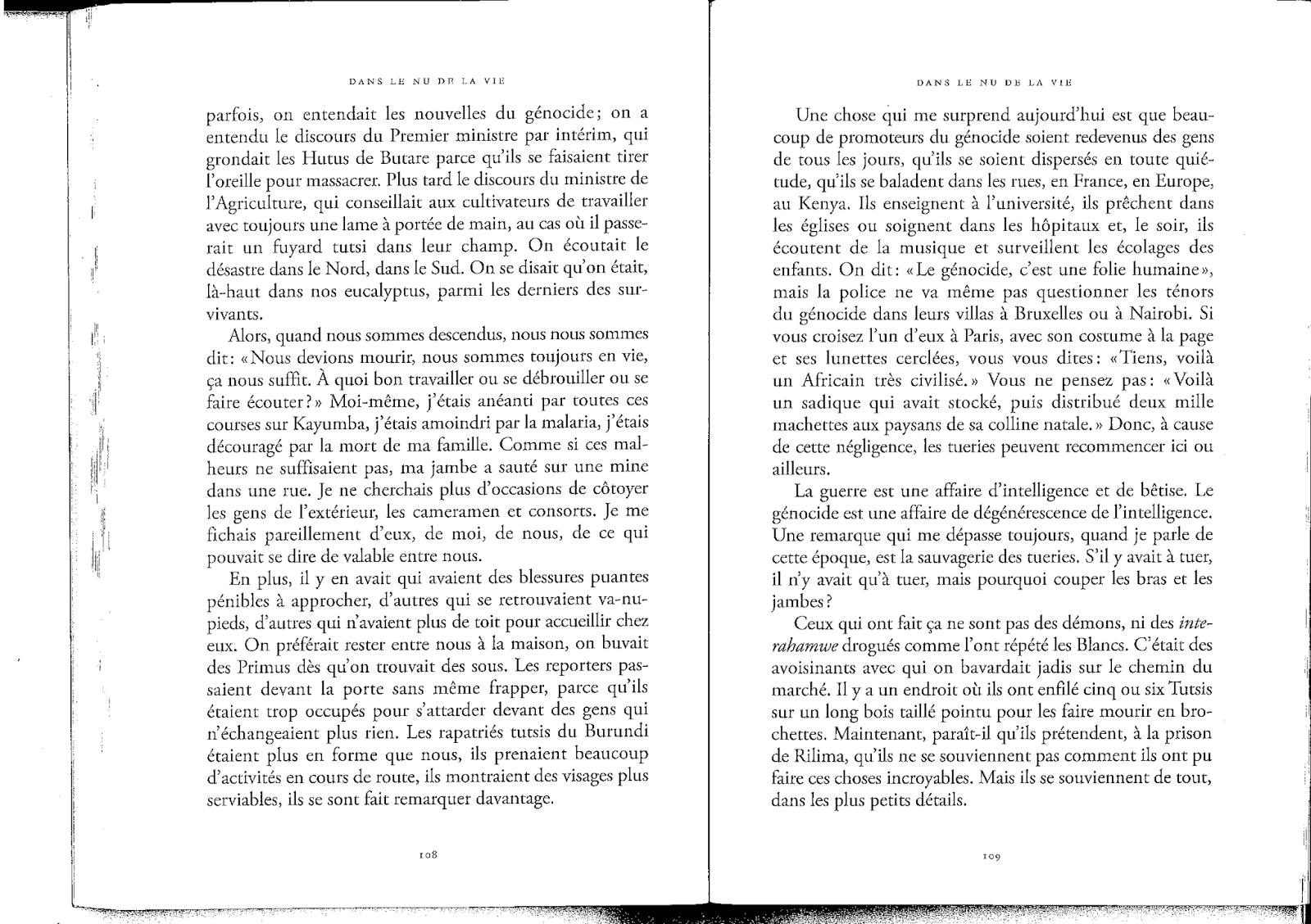 Jean Hatzfeld, Dans le nu de la vie, récits des marais rwandais, Paris, Seuil, 2000, p. 9